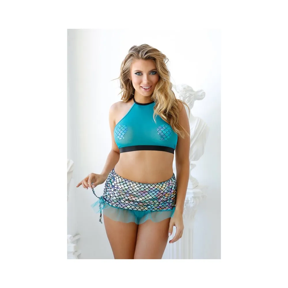 High-Neck Halter Top & Ruched Side Tie Skirt Set